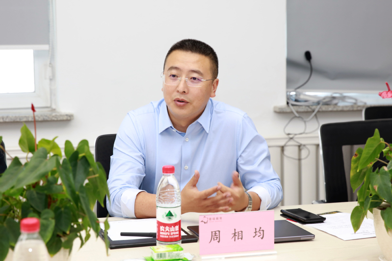 周相均代表北京普瑞派尔教育科技有限公司致辞。他表示公司专注服务教育领域13年,助力高等教育国际化的发展。作为两校之间的联通桥梁,公司将不遗余力为两校的友好合作做好服务保障工作。