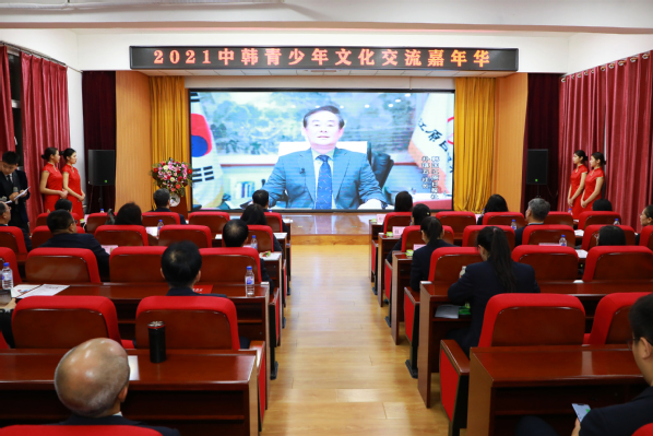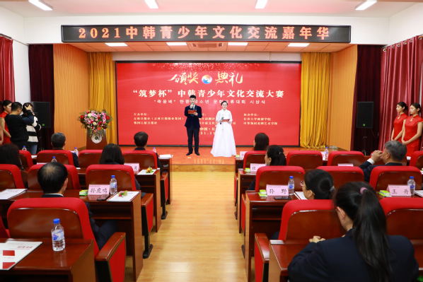 11月8日下午,2021中韩青少年文化交流嘉年华暨“筑梦杯”中韩青少年文化交流大赛颁奖典礼及中韩青少年文化交流实训基地项目启动仪式、校企合作签约仪式在我校筑梦报告厅举行。吉林日报社(吉林日报报业集团)领导,吉林省外事办公室二级巡视员修立征,省委宣传部相关处室领导,吉林省人民对外友好协会亚非部部长王爽,长春市韩国(人)商会会长李龙得,长春市吉语翻译有限公司总经理张丽,中筝光明艺术学校(欧亚卖场校区)校长陈玉舫,金沙官网副董事长郑晓明,校领导刘耀辉、程越及相关各界人士、中韩青少年共90余人出席活动。韩国江原日报社社长朴镇五以视频的形式参加了活动。