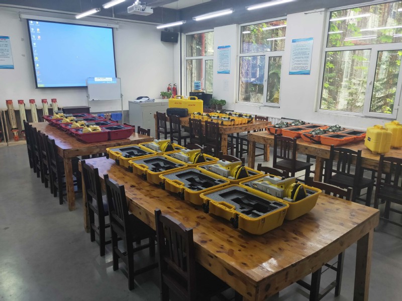 实验室配备先进的测量仪器设备,有全站仪8台、经纬仪4台、水准仪8台、罗盘仪8台、RTK GPS4台和数字化地形地藉成图软件CASS9. 0及其他辅助设备,共计100余套(件)。