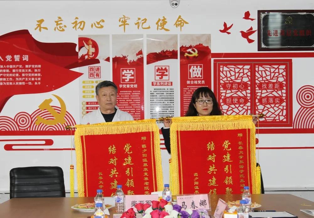 在观看鑫夕阳的宣传片之后,双方互赠锦旗,在柴亚军院长的带领下,基础部党支部党员参观了鑫夕阳养老院的党建宣传墙。通过公共区域宣传栏布放,使内部员工、外部客户和人民群众及时了解养老院党建引领发展的实时信息,鼓舞了广大员工的干劲和信心,提高了向心力和凝聚力,为党建和改革发展提供了强大的精神力量和良好的舆论支撑。