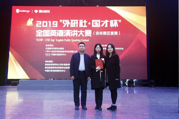 2019“外研社·国才杯”全国英语演讲大赛由教育部高等学校大学外语教学指导委员会、中国外语与教育研究中心、外语教学与研究出版社等多家单位共同举办。来自我省40余所高校的42名选手参加了吉林赛区的比赛。比赛分为定题演讲、即兴演讲、回答评委提问等环节。刘春蕾同学凭借饱满的精神、出色的英语演讲能力赢得评委的一致认可获得三等奖。