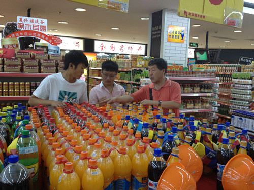 2010级市场营销专业学生在实习过程中,分配到食品区域的学生在为消费者进行相关产品介绍