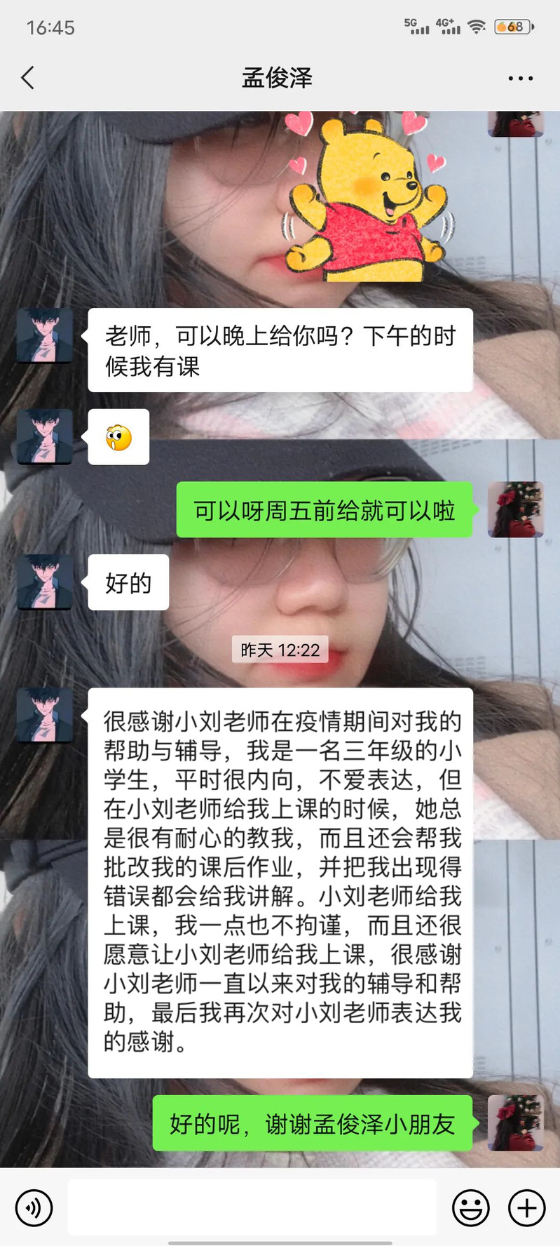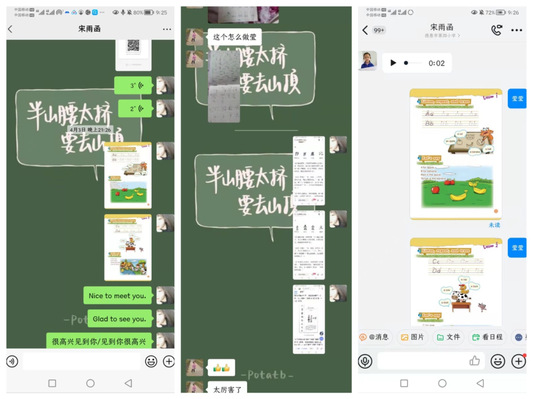 课后时间,志愿者们通过微信与学生沟通、反馈、跟进学生的学习情况,了解学生的生活状况,解答孩子们学习上的疑惑问题。