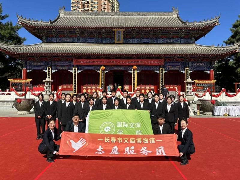 礼乐和鸣,庄严肃穆,共祭先师,传承儒家文化。2023年9月28日,是我国伟大的思想家、教育家、儒家学派创始人孔子诞辰2574周年纪念日,外国语学院、国际交流学院团委书记戴军威带领25名青年学生赴长春市文庙博物馆参加本次“盛世华章 和合大同”纪念孔子诞辰2574周年典礼。