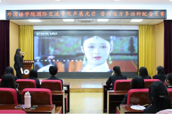 为进一步促进语言文化交流,激发学生学习外语的兴趣,提高学生的口语表达能力,营造浓厚的外语学习氛围,12月3日,外国语学院、国际交流学院于筑梦报告厅举办“‘声’展光芒,‘音’向远方”多语种配音大赛决赛。大赛由学院团委学生副书记牛远哲、许可,学生会轮值主席王一涵,团委学生秘书长郭上瑜、肖志丽,办公室主任李晨曦担任评委。