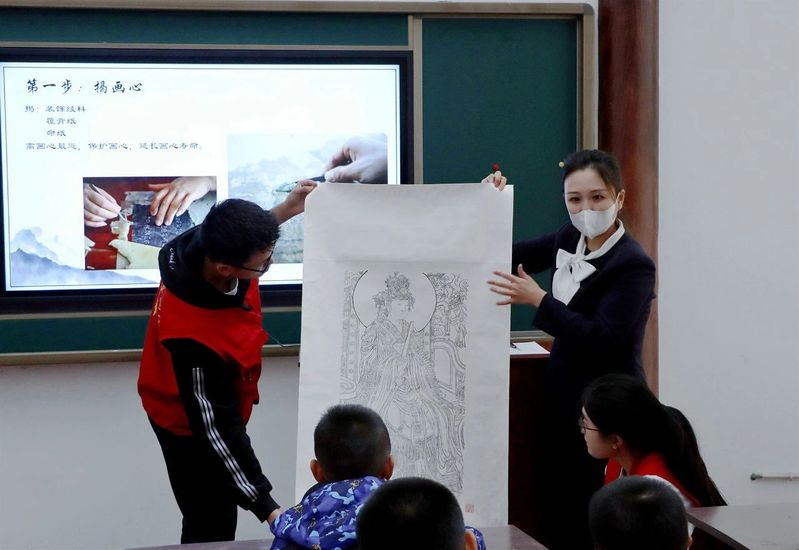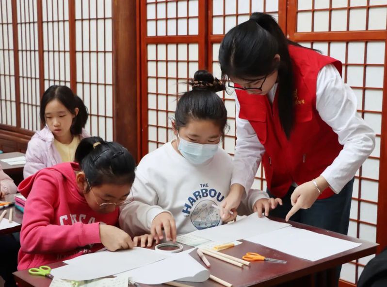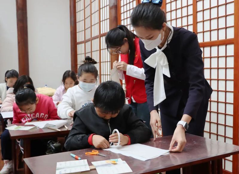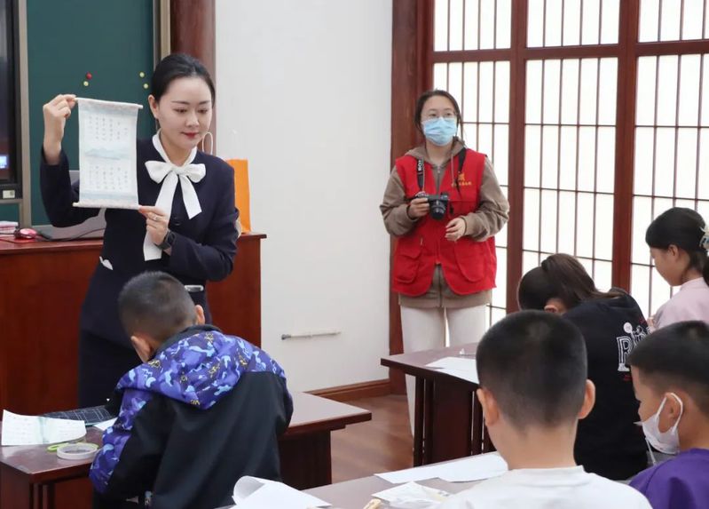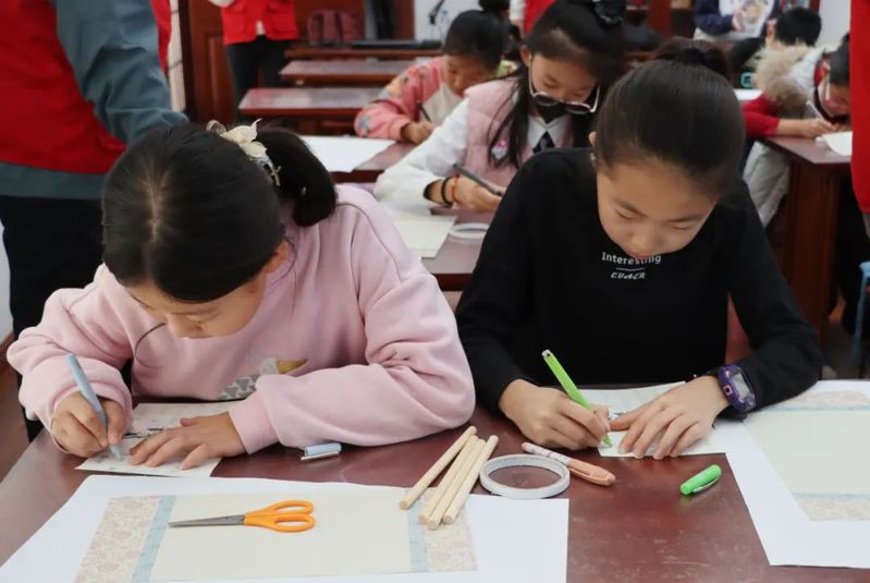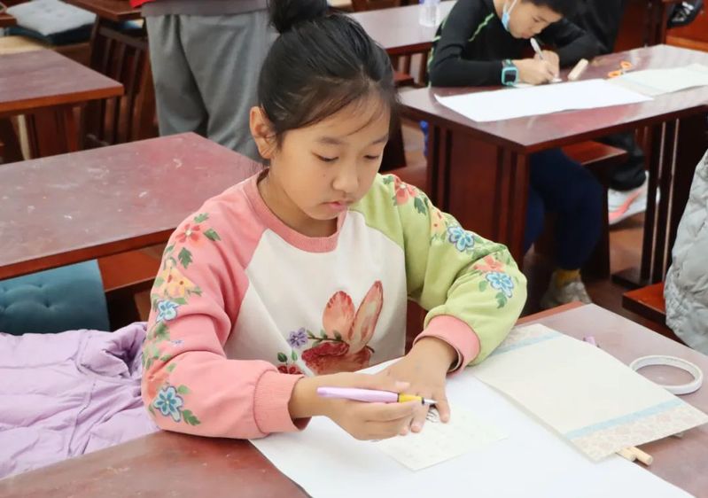 文文老师向我们展示了自己制作的画轴,接下来,同学们要利用手中的备品,进行制作体验啦~首先,我们要进行古诗描写。