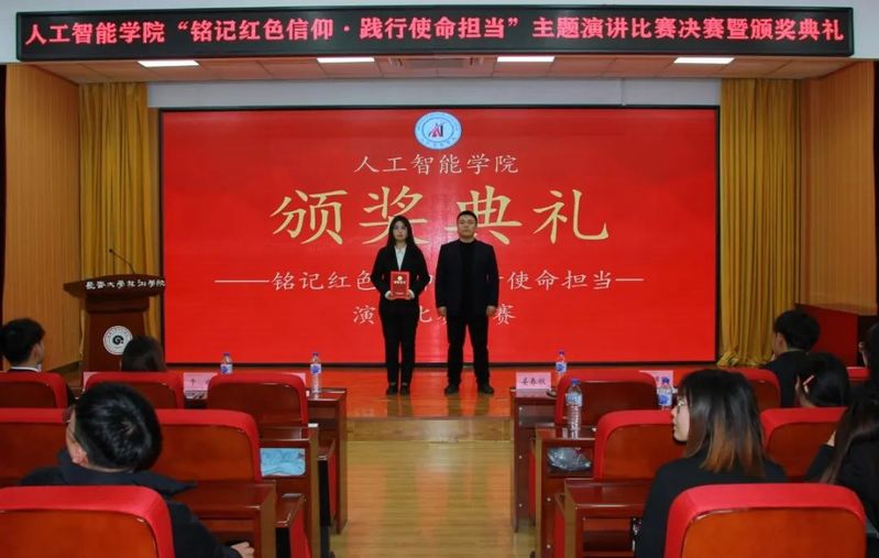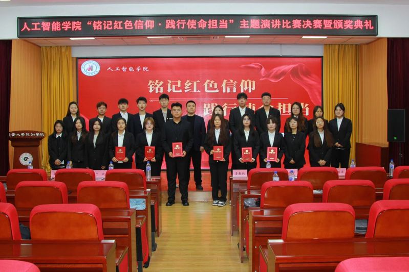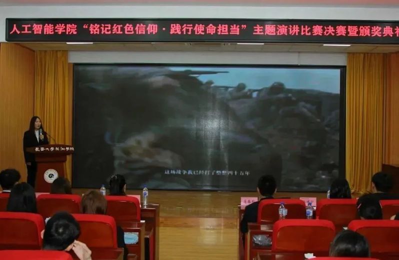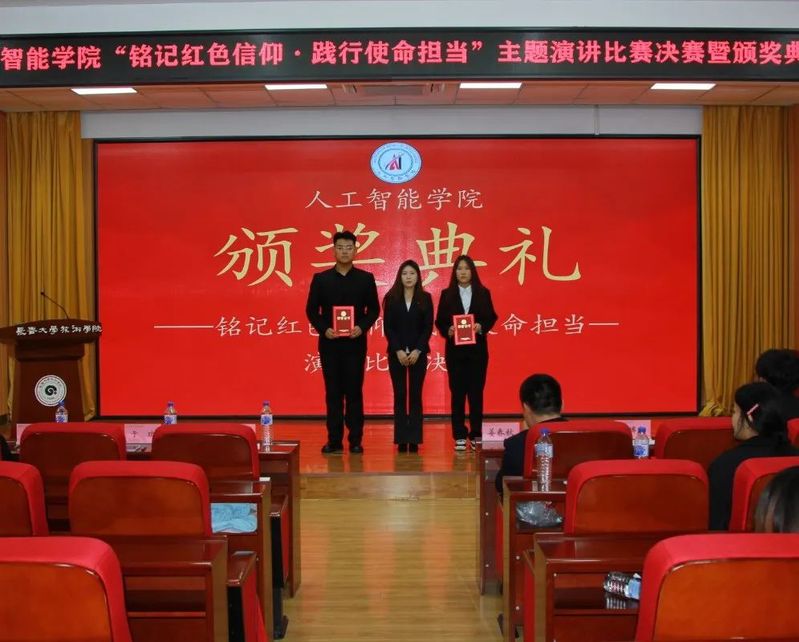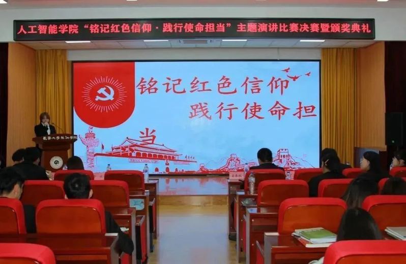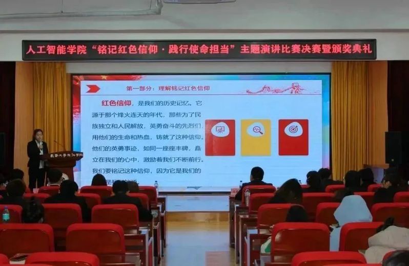 为深入学习贯彻习近平新时代中国特色社会主义思想与党的二十大精神,营造浓厚的学习氛围,组织、教育在校学生弘扬红色文化、传承革命精神,不断引领学生增强迈向新时代、开展新征程的使命感和责任感。人工智能学院于11月21日12:00在筑梦报告厅247举办了“铭记红色信仰·践行使命担当”主题演讲比赛决赛。莅临本次活动的嘉宾有人工智能学院团委书记姜春秋、辅导员王筱惠、张博宇、于欢以及人工智能学院学团组织全体主席团成员。
