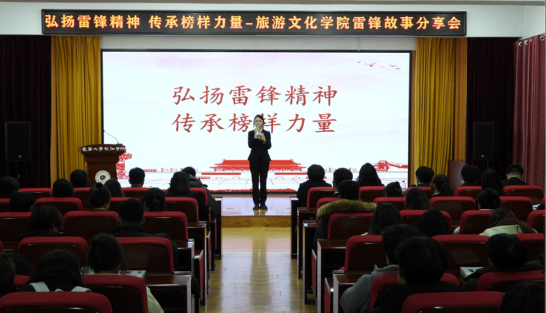 3月5日,旅游文化学院团委在筑梦报告厅举办“弘扬雷锋精神,传承榜样力量”雷锋故事分享会。参与本次活动的有学院团委书记兼学生工作办公室主任张锦华、22级辅导员老师刘红远、21级辅导员老师王秋皓及学院团学组织成员,23级同学代表。活动由范靖妍主持。