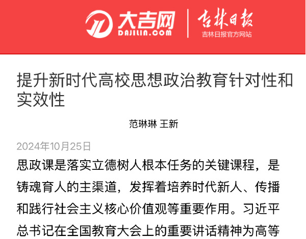 【吉林日报】提升新时代高校思想政治教育针对性和时效性