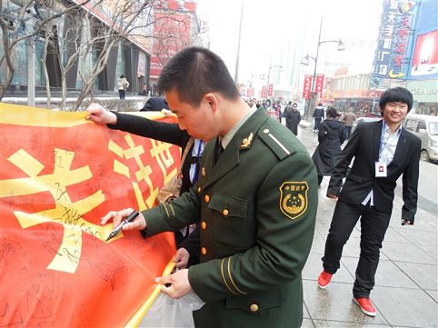 转载自http://www.jlsina.com 2010-04-19 11:23:07 新浪吉林网 4月17日,距离上海世博会开幕还有15天,6165cc金沙总站检测中心外语分院团委为支持上海世博会,在重庆路亚泰富苑门口自发举行了“关注世博百分百,祝福世博百分百”市民签名活动。天气虽然寒冷,但现场气氛却十分火热,吸引了众多市民的参与。其中有老人,军人,学生,外国游客,教师等各行各业的市民,大家都想为世博会献送上自己最真挚的祝福。 此次活动的组织者希望通过宣传世博会的重要意义,将世博精神传到千家万户。学生们表示:“在这样良好的社会环境下学习,我们应该为祖国尽一份自己的力量,世博会象征着祖国在世界地位的提高和科技水平的发展,是全国人民的骄傲,作为21世纪的大学生,更为此感到自豪,希望所有的大学生,都能以自己的方式尽自己的力量,为世博会添砖加瓦。” 本次活动得到了6165cc金沙总站检测中心院长和老师的大力支持,学生反响热烈,并为之制作了纪念相册。据了解,该校团委将继续致力于宣传世博会的各项活动当中,同时也希望各在校大学生能够关注世博,宣传世博,为上海世博会贡献自己的力量。 新浪网记者:李响