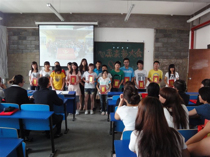 会议于中午11:40在教学楼347教室召开,到场嘉宾领导有主管学生工作的张院长,学工处梁处长,以及团委贾烊老师,领导们分别为优秀志愿者颁发证书。大会共表彰优秀志愿者48人,按累计志服务时间分为一等优秀志愿者,二等优秀志愿者和三等优秀志愿者。