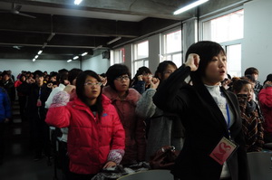 2010年12月6日11:40,心蕊志愿者协会在教学楼447教室召开2010级新生志愿者宣誓大会。会议邀请到了主管学生工作的张柏发院长,学工处梁继森处长,团委贾烊老师、分院的团委副书记,以及团委、学生会等组织的学生干部。