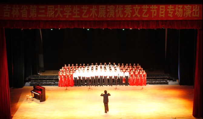 6月13日,由吉林省教育厅主办的“吉林省第三届大学生艺术展演优秀文艺节目专场演出”在吉林省孤儿学校举行。金沙官网由艺术分院80名学生组成的合唱团通过了全省48所高校的海选进入这次歌唱类展演,合唱曲目为《中国军魂》和《在灿烂阳光下》。