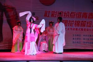 在第一篇章“起,始于学术爱好”中,校园十佳歌手获得者李思琪为晚会带来的歌曲《LEGEND》,宛转悠扬,浓浓的深情与现场互动的绚烂荧光交织在一起,构成一幅宁静美好的画面;随后,乐声凤舞协会的《Kick Boxing》女子搏击操,铿锵有力的节奏和整齐划一的步伐都在表现着大展风采的巾帼豪迈;小品《致青春》和网络上红极一时的现代舞《套马少年》也博得了在场观众阵阵热烈的掌声。