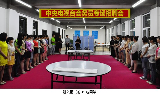 在我院5月份举行的中央电视台专场招聘会中,我院学生优秀的专业素质、扎实的专业功底、良好的沟通能力与积极向上的精神风貌给公司面试人员留下深刻印象,在6月份的招聘计划中,中央电视台又把招聘目标锁定在我院,面向我院招募会议服务人员,主要负责中央电视台内部、涉外等中大型会议的会务工作。