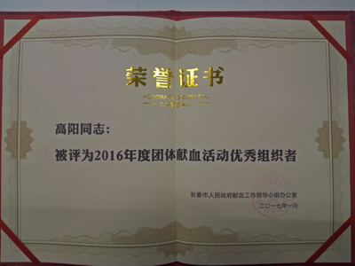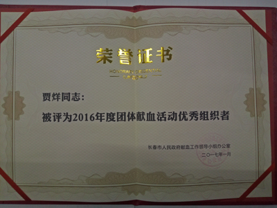 为响应长春市政府的号召,培养大学生爱心奉献、关心社会的高尚品质,我院,精心筹划组织以“每一份献血,都是生命的礼物”为主题的无偿献血活动。近3年累计1400余人参加,献血量超过45万毫升。2016年我院被长春市人民政府献血工作办公室授予“长春市团体献血先进单位”奖、授予学工处高阳处长、团委贾烊书记“长春市团体献血活动优秀组织者”奖。