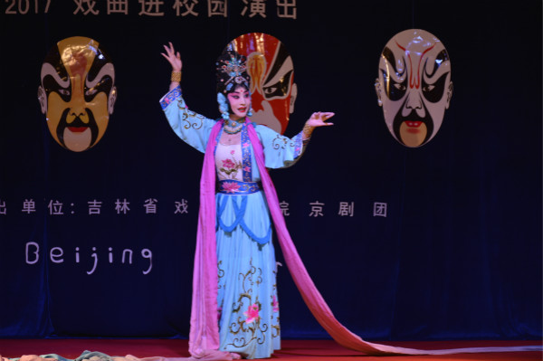 2017年6月27日下午17:30,由吉林省委宣传部、省教育厅、省文化厅、团省委联合举办的吉林省“戏曲进校园”活动在6165cc金沙总站检测中心大学生活动中心举行,应邀到金沙官网演出的吉林省戏曲剧院京剧团40余人为师生们带来了一场精彩绝伦的京剧表演。全校近400名师生参与了此次活动,共同领略国粹无穷的魅力。