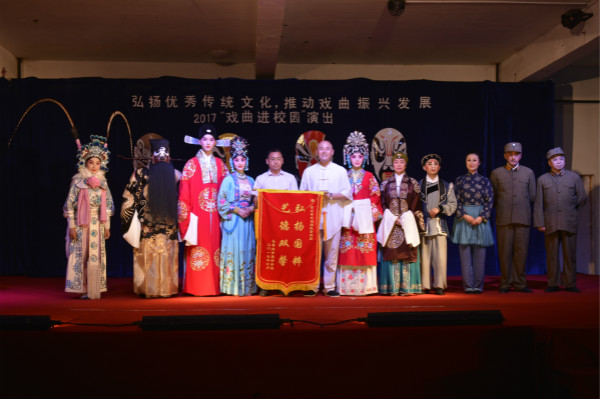 活动尾声,校团委书记贾烊代表学校为吉林省戏剧院京剧团赠送了“弘扬国粹,艺德双馨”的锦旗,以感谢吉林省戏剧院京剧团老师们的精彩演出。