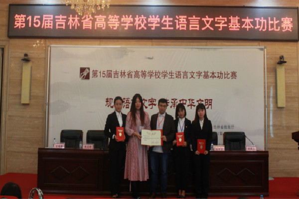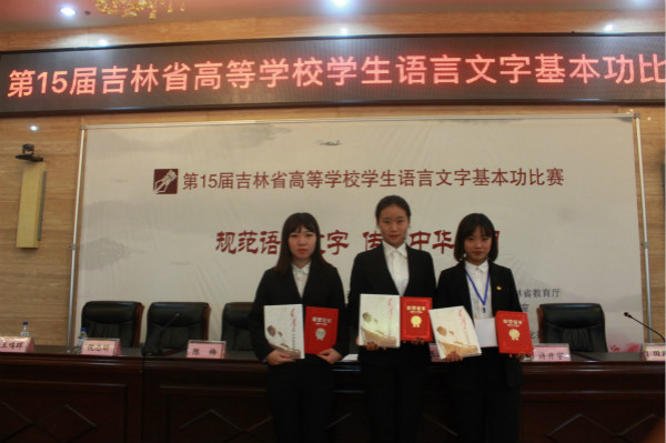 金沙官网国际交流学院汉语国际教育专业学生于2017年9月13日至9月15日参加了由吉林省教育厅、吉林省语言文字工作委员会共同举办的 “第15届吉林省高等学校学生语言文字基本功比赛”。经过三天的激烈角逐,最终我院三名参赛学生分别荣获非师范类乙组个人三等奖,指导教师荣获优秀组织奖。
