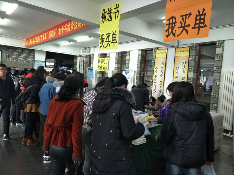 2017年11月23日,金沙官网图书馆与长春学人书店联合举办的“你选书,我买单”图书荐购活动在图书馆一楼大厅举行,平日里安静的图书馆大厅人头攒动,十分热闹。