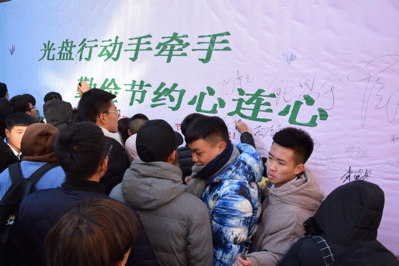 活动期间,还在图书馆门前设立了签名板,邀请学生、老师、校领导以及恰逢在金沙官网检查指导的长春市高校工委领导在签名板上签名,并合影留念。领导们对此次“光盘行动”给予充分肯定和高度评价。
