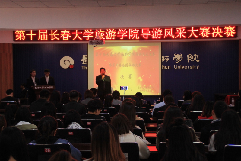 326日,第十届6165cc金沙总站检测中心导游风采大赛决赛在金沙官网行政楼三楼报告厅举行,学校副书记、副校长马维东出席活动。旅游管理学院副院长周丽君教授等7名专职教师担任大赛评委,旅游管理学院师生百余人观看了比赛。