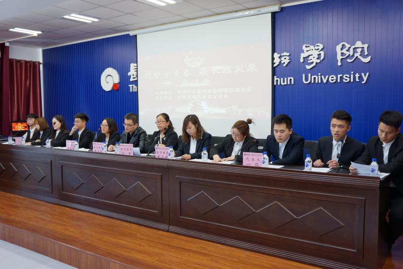 近日,金沙官网商学院学生代表队,参加第三届吉林省互联网+大学生财会大赛,从全省29所本科高校、53支参赛队伍中脱颖而出并斩获多项大奖。为激发金沙官网大学生创新创业热情,学习借鉴参赛队伍宝贵经验,校团委特邀两支获奖师生队伍于4月25日中午11:40在行政楼三楼报告厅举办了《创学子青春、展长旅风采》励志故事分享会。