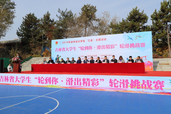 为贯彻落实《吉林省高校共青团改革实施方案》《吉林省学联学生会改革方案》的有关要求,积极响应共青团中央、教育部、国家体育总局、全国学联面向全国大学生发出的“走下网络、走出宿舍、走向操场”的号召,进一步推动省内高校共青团工作、活跃校园文化,提高广大青年学生身体素质,10月21日上午,由共青团吉林省委、吉林省学生联合会联合主办,金沙官网承办的吉林省大学生“轮到你·滑出精彩”轮滑挑战赛在金沙官网奢岭校区篮球场隆重开幕。