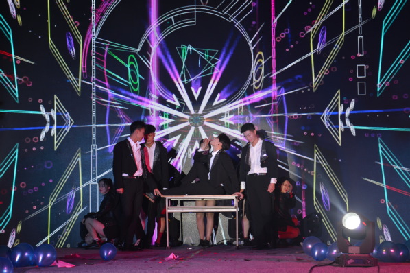 随后各类节目轮番登场,异彩纷呈。无论是优雅素净,柔美大方的节目《芳华》还是节奏动感十足的《伪装者》,都会让场下观众情不自禁地跟着音乐打起节拍,每一个表演,都博得场下观众的阵阵掌声。《暮光,破晓》这首柔情蜜意的歌曲与后来的酷炫舞蹈形成鲜明对比,节目风格的陡然变换令大家猝不及防。《华夏》是一支古典舞蹈,演员们的优雅舞姿展现了属于国学的魅力,台下观众无不为之震撼。