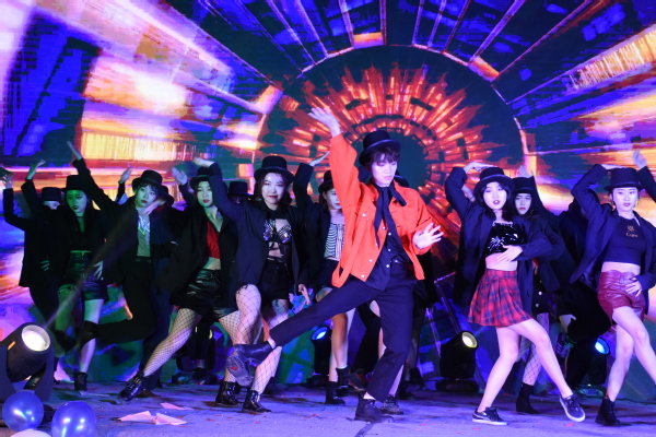 晚会伊始,徵鸣乐队带来的热场秀瞬间点燃全场,惊喜连连。晚会在火热的开场舞《EIEI》后拉开帷幕,镁光灯将整个舞台照的如同梦幻一般。观众挥动着手中的荧光棒,开场舞青春向上,活力与激情同在,使全场沸腾!