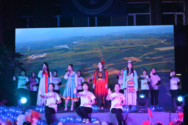 为进一步推进学校文艺活动的蓬勃发展,丰富校园文化,活跃学习氛围,为学生们提供一个真正展示自我风采和树立自信的舞台,12月11日晚17时30分,由旅游管理学院举办的“展美好时光·歌璀璨长旅”大型文艺晚会在教学楼负一楼的羽毛球场精彩上演!学院师生欢聚一堂,共享精彩绝伦的视听盛宴。