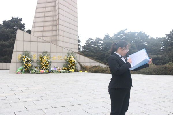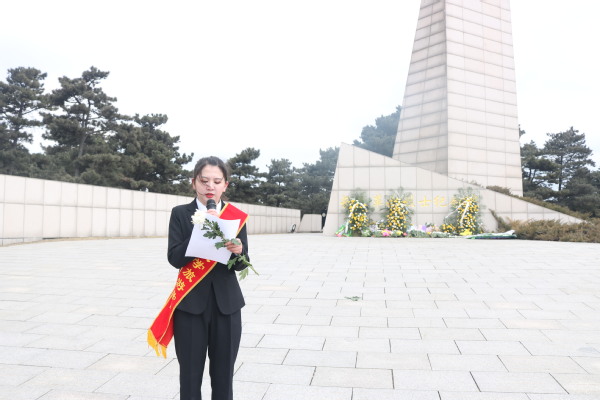 在庄严肃穆的纪念碑前,李姗宣布悼念仪式正式开始,青年学生代表向革命烈士敬献花圈,向英勇无畏的革命先烈致以最诚挚、最沉重的哀思。学生党员应佩瑶代表发言,表达了青年学子继承革命先烈遗志,珍惜时光,奋发图强,勇于肩负起中华民族伟大复兴历史使命的坚强决心。