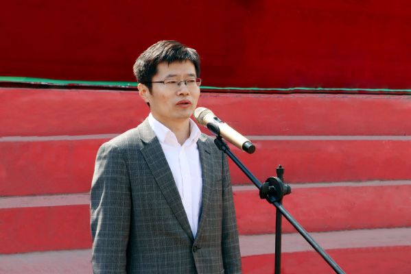 启动仪式上,杨威首先向全体教职工介绍了本次活动的参与规则,程越代表学校向工会授旗,校团委副书记张帆代表参加活动的教职工发言,张洪昭宣布活动正式启动。