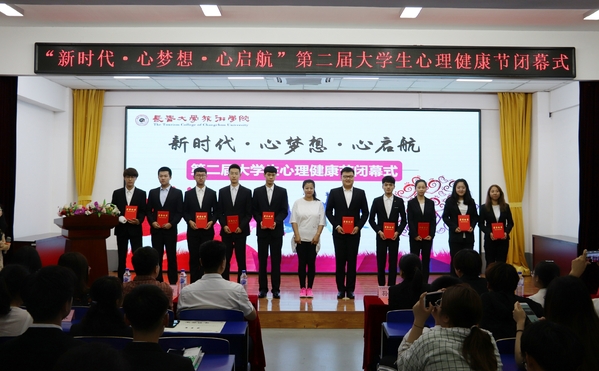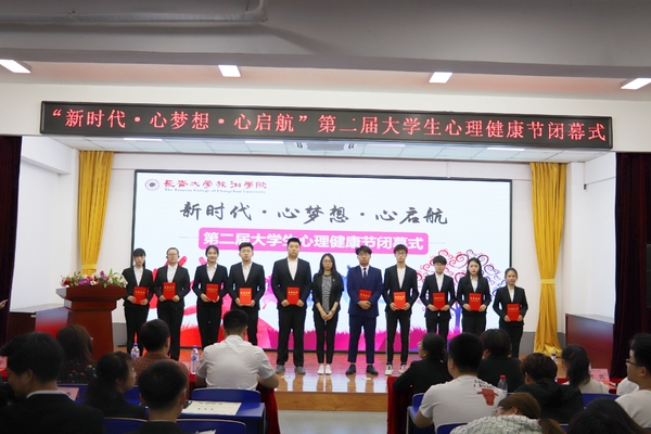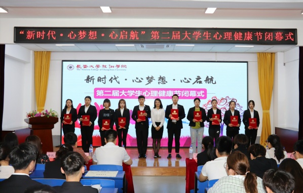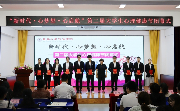 为深入学习贯彻习近平新时代中国特色社会主义思想,提升学生的心理健康素质,推动学校具有特色的心理健康教育体系进一步深化和完善,表彰在本届大学生心理健康节系列活动中表现突出的集体和个人,6月23日,学生工作处在教学楼筑梦报告厅举办“新时代·心梦想·心启航”第二届大学生心理健康节闭幕式。校长助理、学生工作处处长高阳参加闭幕式。闭幕式由学生工作处心理健康教育咨询中心教师崔慧旭主持。