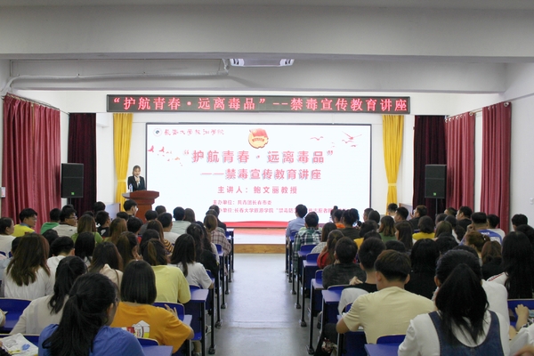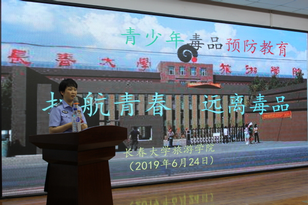 在“国际禁毒日”到来之际,为提高广大青年学生识毒、拒毒、防毒、禁毒意识,加强对金沙官网学生的禁毒宣传教育,校团委于6月24日在筑梦报告厅举办“护航青春·远离毒品”禁毒宣传教育讲座。吉林警察学院侦查系副教授、长春市公安局禁毒支队情报信息大队副大队长鲍文丽担任本次讲座的主讲人。