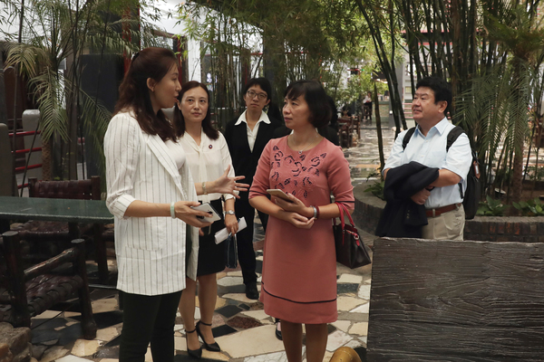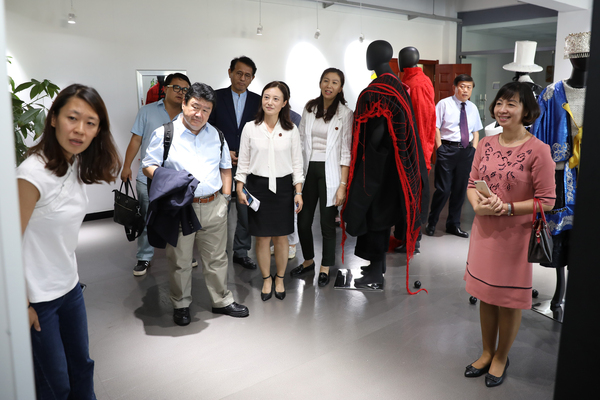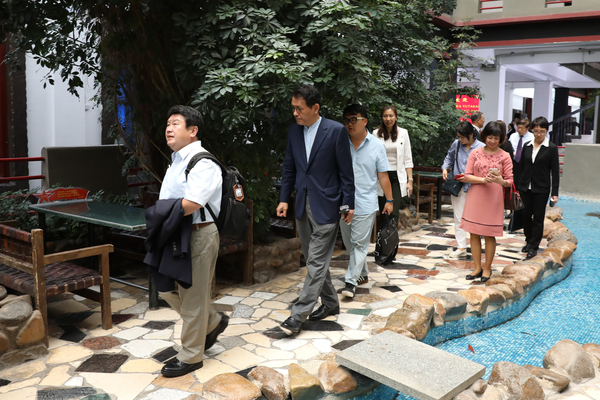 会议结束后,在校领导的陪同下,古川裕、阮黄英、金炳善参观了学校室内天井景观带和创客中心。