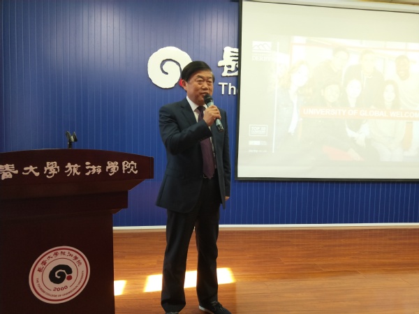 赴英留学宣讲会由来自英国德比大学旅游管理学院的主任斯托克代尔女士主讲。学校副校长贺柏平出席宣讲会。国际交流处处长、外国语学院、国际交流学院院长黄江,旅游管理学院副院长周丽君、吴洪亮,国际交流处副处长、外国语学院、国际交流学院副院长王丹以及旅游管理学院120余名师生参加宣讲会。