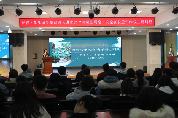 为帮助广大团员青年树立理性消费观念,强化法律意识,维护自身合法权益,在“双十一”来临之际,校团委于11月6日,在大学生活动中心举办“青思大讲堂”系列活动之“消费在网络·安全在长旅”维权主题讲座。金沙官网商学院副院长王春秋副教授担任主讲嘉宾。讲座由校团委书记贾烊主持。