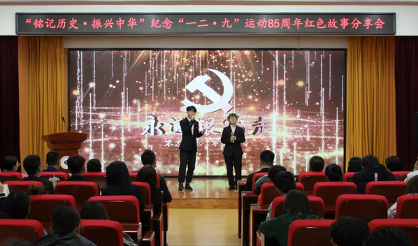 铭记历史,方能远行。纪念“一二·九”运动85周年红色故事分享会的开展,让师生一起重温在不同年代涌现出的先进人物和感人事迹,进一步激发了师生的爱党爱国爱社会主义的巨大热情,坚定了师生为实现中华民族伟大复兴的中国梦而努力拼搏奋斗的决心。