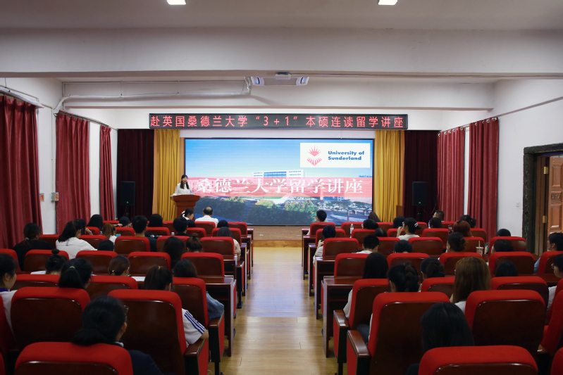 签约仪式后,在学校筑梦报告厅举行了桑德兰大学留学讲座活动。学校副校长程越出席了本次活动,黄江、王丹陪同参加,各学院学生聆听了报告。