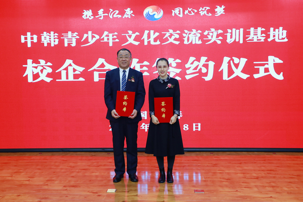 11月8日下午,2021中韩青少年文化交流嘉年华暨“筑梦杯”中韩青少年文化交流大赛颁奖典礼及中韩青少年文化交流实训基地项目启动仪式、校企合作签约仪式在我校筑梦报告厅举行。吉林日报社(吉林日报报业集团)领导,吉林省外事办公室二级巡视员修立征,省委宣传部相关处室领导,吉林省人民对外友好协会亚非部部长王爽,长春市韩国(人)商会会长李龙得,长春市吉语翻译有限公司总经理张丽,中筝光明艺术学校(欧亚卖场校区)校长陈玉舫,金沙官网副董事长郑晓明,校领导刘耀辉、程越及相关各界人士、中韩青少年共90余人出席活动。韩国江原日报社社长朴镇五以视频的形式参加了活动。