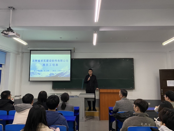 吉林省求实建设软件有限公司经理张立明首先简要介绍了公司的发展概况,并着重就职业发展、工作要求以及薪酬待遇等问题作了说明。针对在校生工作经验欠缺、操作技能薄弱的问题,公司将面向工学院学生举办企业定制培训班,通过培训使学生掌握工程造价项目实战技能,并获得吉林省工程造价软件技能认证。为更好的完成准员工招募工作,招聘会现场还通过调查问卷的形式了解在校生对于实习、就业、岗位的主要诉求。现场气氛活跃,学生们积极咨询相关职业的薪资与职业发展前景等情况,张立明针对同学们关心的问题作了详细、专业的解答。