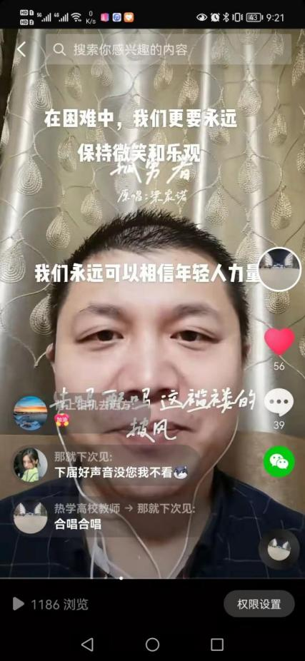 电子商务教研室结合课程特点,开展了多种形式的课前暖心3分钟活动。赵晗舒老师在《非线性编辑技术》课堂上,以播放音乐作为课前暖心活动的主要内容,同时结合疫情背景与课程特点,指导学生制作《我和我的祖国》MV剪辑,剪辑抗疫短视频作品,课余时间与学生共同交流,对有精力的同学进行个别指导,激发同学的学习兴趣。刘旭明老师在正式授课前,以K歌形式进行课前放松,同时利用抖音平台发布激励视频,并以“读书会”的形式进行直播,不仅加深了师生之间的联系,增强了学生的专业自信,同时有效构建了教师与学生彼此间的心理支撑。