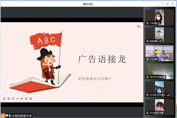 面对疫情的紧张形势,为了缓解学生的心理压力,保持积极乐观向上的心态,《广告学原理》任课教师吕琦每节课都会以课前师生对话“云聊天”的方式,分享身边开心的事,让在校学生感受到温暖。同时也会设置与广告课程相关的小游戏,如:广告语接龙、听广告猜品牌等,通过抢答形式让同学们都参与进来,让大家在欢声笑语中学习。