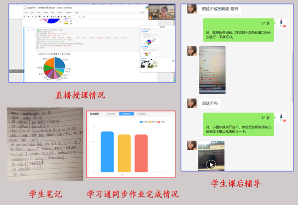 在本次数据可视化分析课程绘制饼图章节的讲解中,张金凤老师首先强调编程环境python语言的编码规范,分别从每行缩进、空行要求和空格要求以及函数命名规则等方面进行讲解,从而提醒同学们“做事先做人,凡事守规矩”的道理。其次在绘制图形的过程中,除了绘制主要图形,还应该设置图形的颜色、形式、图例、图标及坐标等细节,引导学生做事情不应只满足基本要求,还应做好外围工作。例如平时学生上交的作业和将来的毕业设计等,要保证上交的材料至少做到自己非常满意。