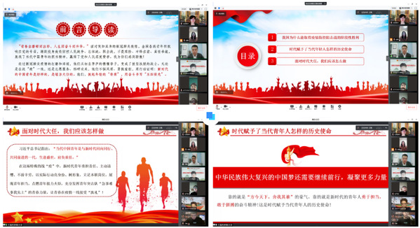 为深入学习贯彻习近平总书记重要指示批示精神,全面贯彻疫情防控工作部署要求,提升我院党组织的组织力、战斗力,切实加强疫情期间大学生思想引领和政治教育,教育引导大学生爱党爱国、勇担使命。4月16日,人工智能学院积极响应号召,开展“青春战疫路 青年勇担当”云端大讲堂活动,本次活动由人工智能学院党总支书记王磊主讲。全体辅导员、学生党员、团学组织干部共计170余人参加此次会议。