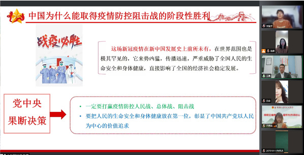 此次云端大讲堂活动,反响热烈,各年级辅导员、大四学生党员、团学组织干部、班级干部代表纷纷发言,在课堂上充分交流。