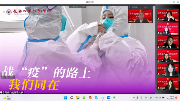 随后,孙野围绕“必胜之心”、“责任之心”、“仁爱之心”、“谨慎之心”,深入解读了“生命至上、举国同心、舍生忘死、尊重科学、命运与共”的抗疫精神及其在长旅校园的体现,深情讲述了抗疫一线的长旅故事,通过与同学们分享驻校教职工、学生志愿者等身边的榜样事迹,激发青年学生从移情到共情,从共情到共鸣,把爱国、爱校作为最大的责任担当,焕发共抗疫情,爱国力行、爱校力行的强大内驱力。