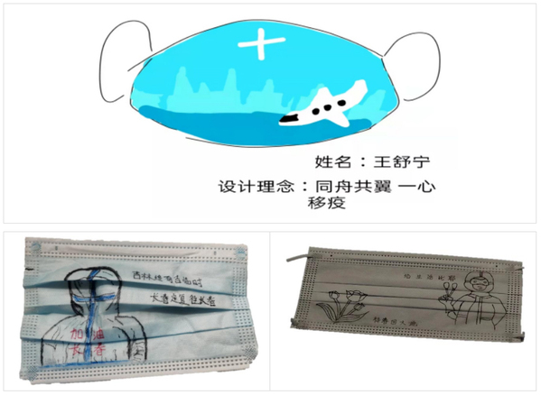 大家一起尝试在口罩上做出艺术设计与改造,在不影响口罩原本防护能力的情况下,使原本机械化的戴口罩行为变得有趣起来,鼓励大家都以积极乐观的态度共同面对疫情的挑战。