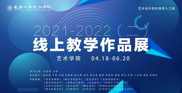 在新冠疫情的影响下,艺术学院迅速转变和调整线上教学方式,坚持线上线下教学同标准、同要求,学院教师努力发挥专业特色,充分挖掘线上教学优势,克服实践教学困难,以丰富多彩的形式和内容开展教学活动,确保在线教学质量不降低,人才培养效果不打折。近日,为庆祝中国共产主义青年团成立100周年,艺术学院举办了三期线上实践教学育人作品成果展,来自《女装设计》《电子产品设计》《头饰制作》课程的近30名同学参加了此次作品成果展览。每个作品都展现着长旅青年的青春锐气和专业才华,凝聚着他们的创意与汗水,显现出了青春的朝气与活力。参展的同学们发挥艺术细胞,为大家呈现出各式精彩纷呈的作品。今天,先让我们一起来领略长旅青年的艺术之美。